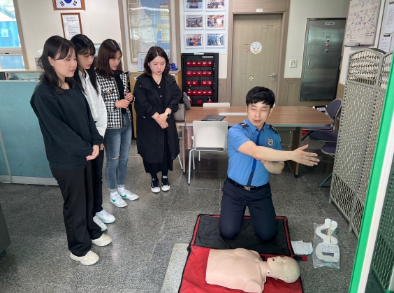 울진해경 청년인턴들은 축산파출소 방문을 시작으로 해양경찰 파출소의 주요업무와 구조장비 이해, 심폐소생술을 실습했고,
