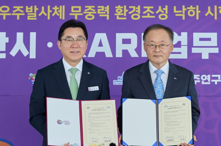 [뉴스서치] 아산시는 7일 아산그린타워에서 한국항공우주연구원(KARI)과 우주발사체 무중력환경 조성 낙하 시험 시설 구축을 위한 협약식을 개최했다.
