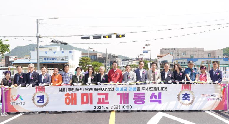 이날 해미교 일원에서 열린 개통식에는 이완섭 서산시장, 김맹호 서산시의회 의장, 서산시의회 의원 등 100여 명이 참석해 준공을 기념했다.