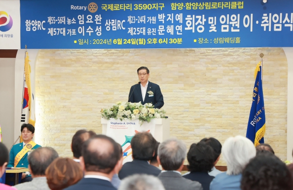 [뉴스서치] 국제로타리 3590지구 함양·함양상림로타리클럽은 지난 24일 저녁 성림웨딩홀에서 2024~2025년도 회장 및 임원 이·취임식을 개최했다.