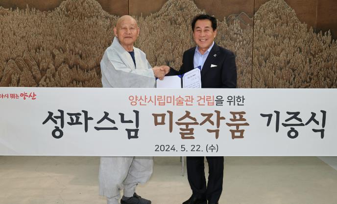나동연 양산시장은 “성파 대종사께서 기꺼이 기증해주신 작품이 37만 양산시민이 염원하는 시립미술관 조성의 마중물이 될 것으로 기대하고, 나아가 지역예술인에게 자긍심을 일깨우는 계기가 될 것”이라며 “함께 만들어 가는 시립미술관으로서 조성될 수 있도록 최선을 다하겠다”고 말했다.
