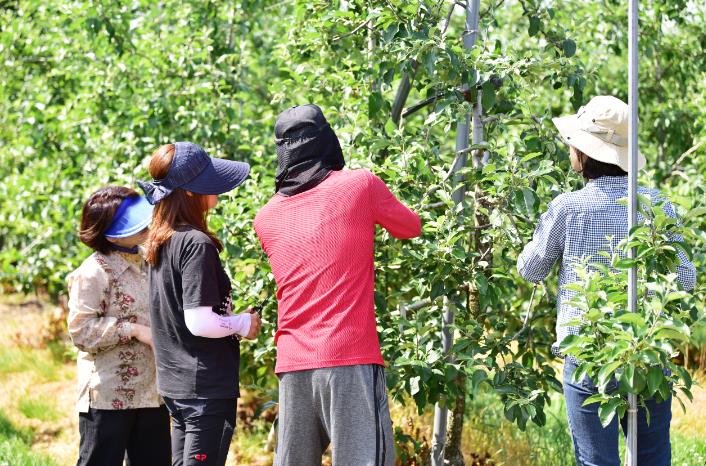 올해 4월부터 일손이 필요한 농가의 신청을 받아 지난 21일부터 50여 농가의 사과적과 작업에 투입되었으며, 이로 인해 농촌지역의 만성적인 인력부족 문제로 어려움을 겪고 있는 농민들의 시름을 덜어줄 계획이다.