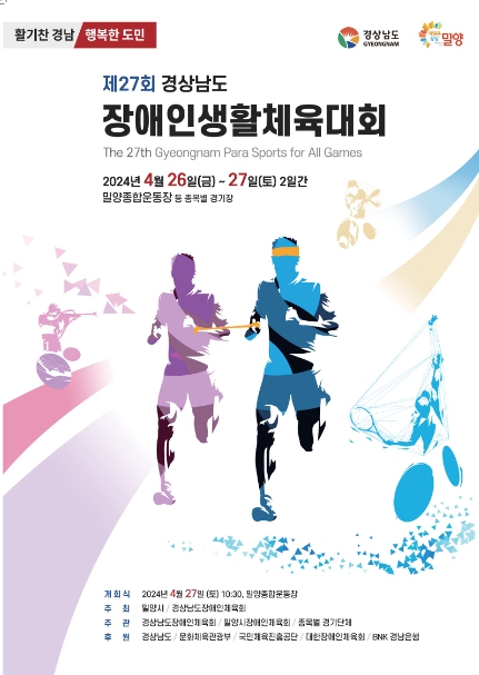 [뉴스서치] 밀양시는 제27회 경상남도장애인생활체육대회가 오는 26일부터 이틀간 밀양시 일원에서 개최된다고 밝혔다.
