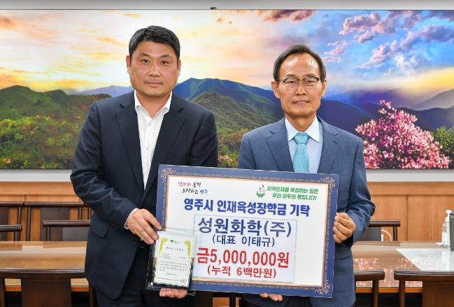 ▲ 성원화학(주), 영주시인재장학금 5백만 원 기탁 |