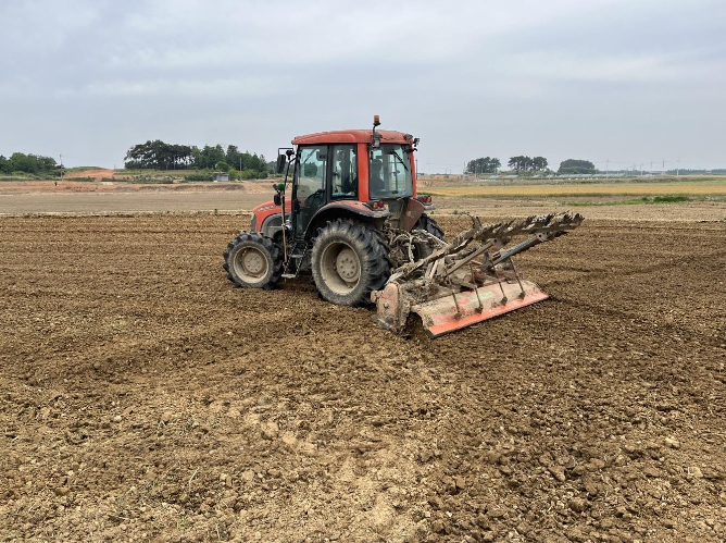 ▲ 벼 무써레질 이앙 작업 모습-마른 로터작업 |