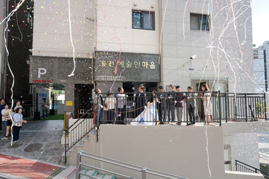 ▲ 지난 8일 ‘동선 예술인마을 개관식’에서 내빈들이 현판 제막식에 참여한 모습 |