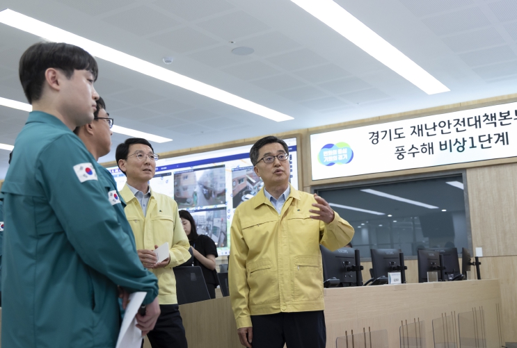 | ▲ 20일 오후 김동연 경기도지사가 경기도청 재난안전상황실을 방문하여 호우 상황을 점검하고 있다. |