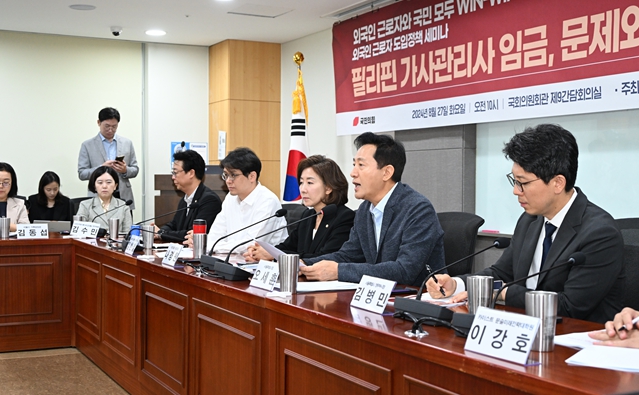 ▲ 오세훈 서울시장이 8월 27일(화) 오전 국회의원회관에서 열린 '필리핀 가사관리사 임금, 문제와 해결책은?' 세미나에서 모두발언하고 있다 |