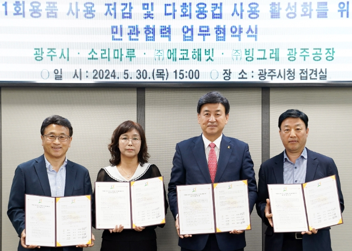 [뉴스서치] 광주시는 30일 시청 접견실에서 1회용품 사용 저감 및 다회용컵 사용 활성화를 위한 업무협약을 체결했다.