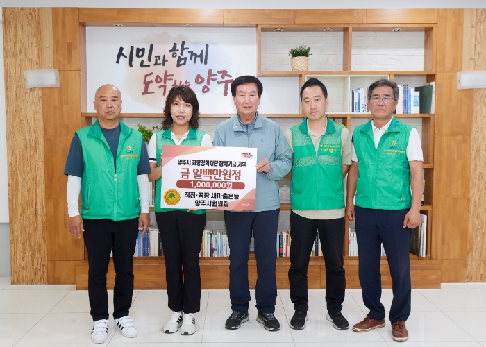 직장·공장 새마을운동 양주시협의회는 지역사회의 어려운 이웃들을 위한 기부는 물론 작년부터 분기별로 관내 교육 발전을 위한 장학기금을 기탁에 앞장서 귀감이 되고 있다.