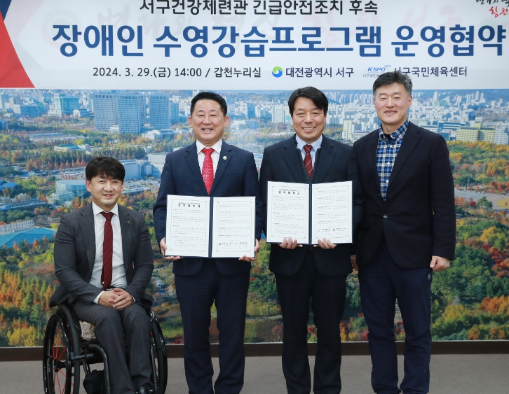 [뉴스서치] 대전 서구는 29일 서구국민체육센터(대표 김대일)와 ‘장애인 수영강습프로그램 운영’ 업무 협약식을 개최했다.