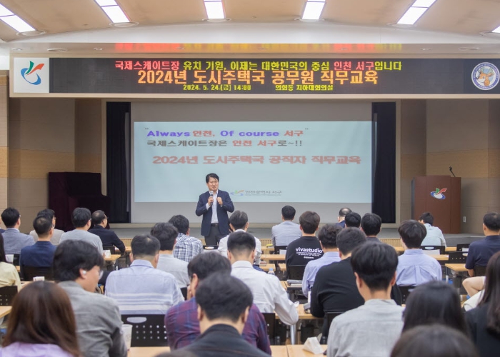 [뉴스서치] 인천 서구는 지난 24일 구청 지하 대회의실에서 ‘2024년 도시주택국 공무원 직무교육’을 성공리에 개최했다고 밝혔다.