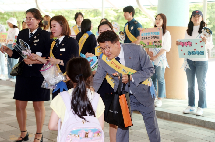 [뉴스서치] 수원특례시의회 김기정 의장이 5일 수원 잠원초등학교에서 열린 수원 남부·중부·서부 초등 학부모폴리스연합 캠페인에 참여했다.