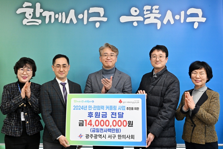 [뉴스서치] 광주광역시 서구는 지난 15일 광주 서구 한의사회와 민관협력 커플링 사업의 일환으로‘뇌병변장애 청소년을 위한 고단백 영양음료 지원’을 위한 후원금 전달식을 개최했다.