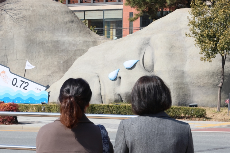 거대원시인의 흐르는 눈물과 침몰하려는 배는 해마다 감소하고 있는 출산율과 그에 대한 안타까움을 표현하고, 대한민국 인구 감소와 출산율 저하에 대한 우려의 뜻을 전한다.