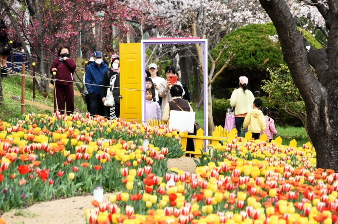 특히 지난 3월 29일~31일 낙동제방에서 열린 낙동강정원 벚꽃축제에서는 벚꽃과 함께 대표적인 봄꽃으로 알려진 오색 튤립을 배경으로 기념 촬영을 하려는 국내외 관광객들로 문전성시를 이뤘다.