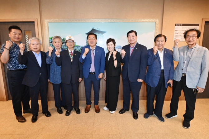 ▲ 이재준 수원시장(왼쪽 5번째)이 보훈단체 대표들과 함께하고 있다. |