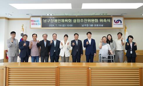 [뉴스서치] 부산 남구는 7월 19일 남구청 대회의실에서 남구장애인체육회 설립추진위원회 위촉식 및 1차 실무회의를 가졌다.