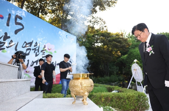 [뉴스서치] 도성훈 인천광역시교육감이 제79주년 광복절인 15일 오전 인천 미추홀구 수봉공원내 현충탑을 찾아 참배하고 있다.