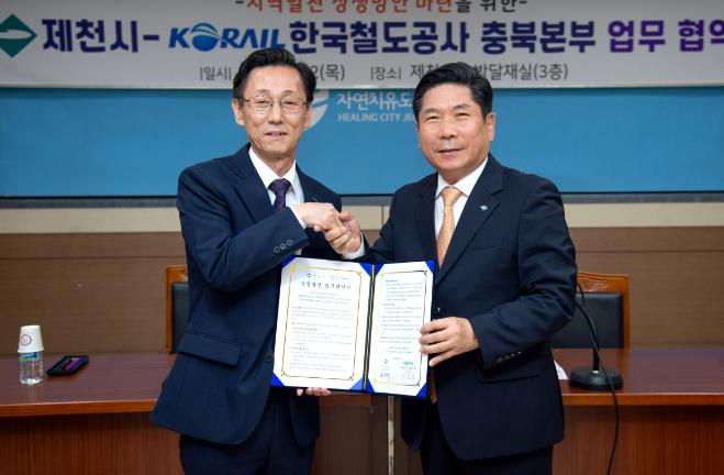 제천시와 한국철도공사 충북본부는 상호협력을 통해 지역경제 및 철도관광 활성화, 지방소멸위기 대응과 같은 지역의 현안들을 함께 해결하고자 5월 2일 제천시청에서 업무협약을 체결했다.