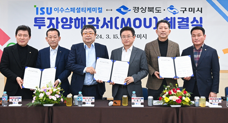 협약식에는 이철우 경상북도지사, 김장호 구미시장, 김상범 이수그룹 회장과 류승호 이수스페셜티케미컬 대표 등이 참석했다.