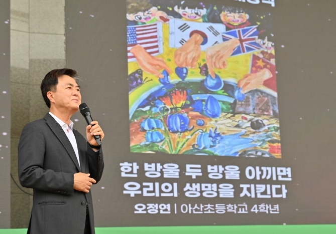 도는 5일 아산시 신청호 일원에서 열린 ‘제29회 환경의 날(제3회 환경교육주간) 기념식에서 김태흠 지사와 임상준 환경부 차관, 박경귀 아산시장, 종교·시민사회단체, 도민 등 2000여 명이 참석한 가운데, 일회용품 제로 실천 협약식 및 선포식을 개최했다고 밝혔다.