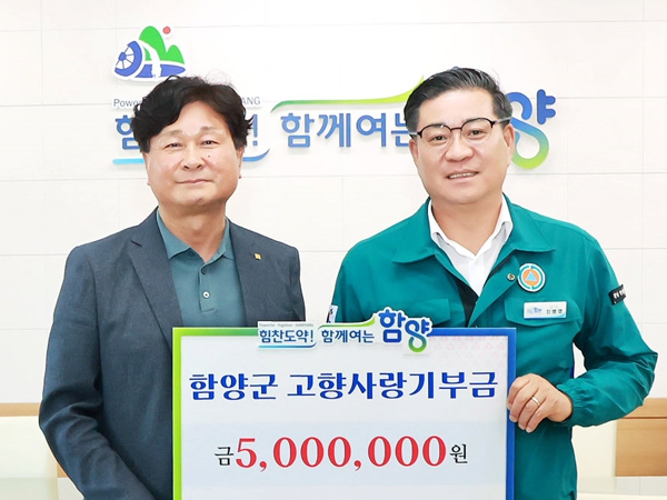 이에 진병영 함양군수는 “고향에 대한 변함없는 애정으로 고향사랑기부제에 참여해 주신 허상득 대표님께 감사드린다”라며 “소중한 기부금은 군민이 행복한 살기 좋은 함양군을 만드는데 의미 있게 사용하겠다”라고 전했다.