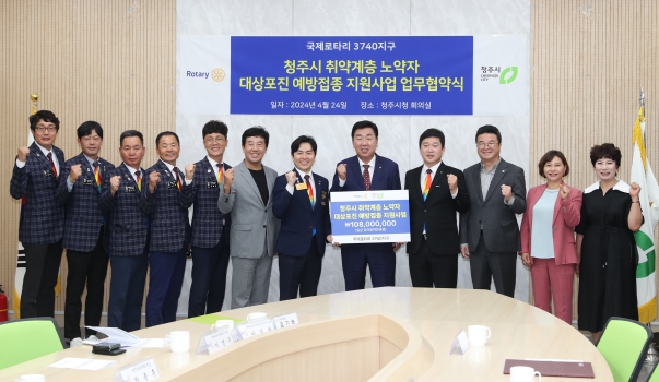 협약에 따라 청주로타리클럽은 의료취약계층 예방접종을 위한 사업비 약 1억 800만원을 지원하고, 청주시 보건소는 사업 대상자 선정 및 접수 등 행정적 지원을 담당하게 된다.