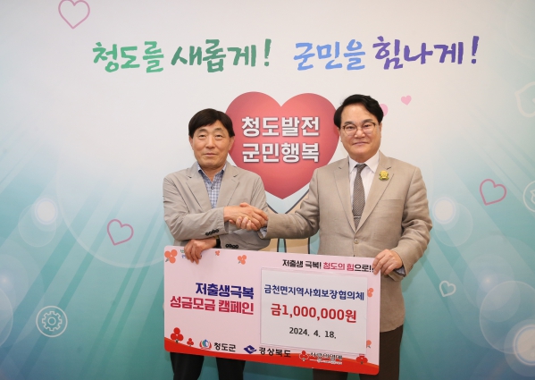 [뉴스서치] 청도군은 18일 금천면 지역사회보장협의체에서 위원들이 뜻을 모아 마련한 저출생 극복 성금 100만원을 기탁했다고 밝혔다.