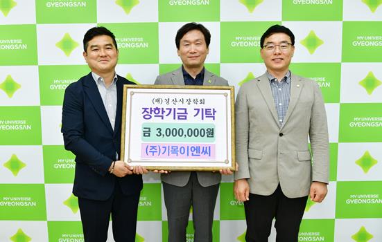 [뉴스서치] (재)경산시장학회는 ㈜기목이엔씨가 24일 시청을 방문해 인재 육성을 위한 장학금 3백만원을 기탁했다고 밝혔다.