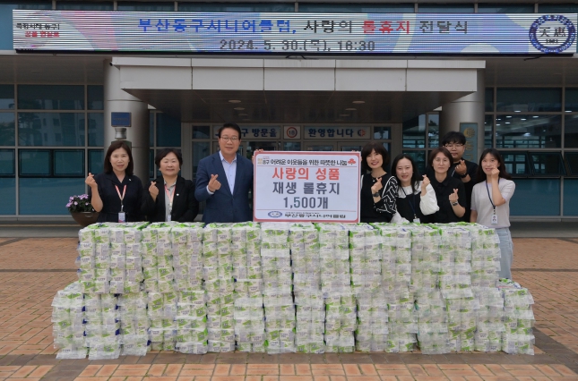 [뉴스서치] 부산동구시니어클럽은 지난 30일, 동구에 사랑의 롤화장지 1,500개를 기탁했다.