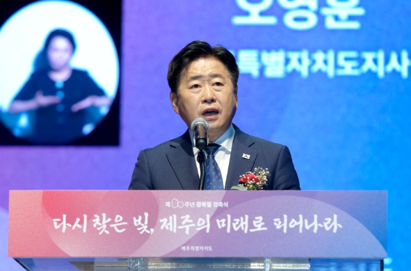이날 경축식은 ‘다시 찾은 빛, 제주의 미래로 피어나라’를 주제로, 광복회원과 도내 기관·단체장, 도의원, 도민, 학생 등 1,100여 명이 참석한 가운데 독립운동의 역사적 의미를 되새기고 새로운 미래상을 공유했다.