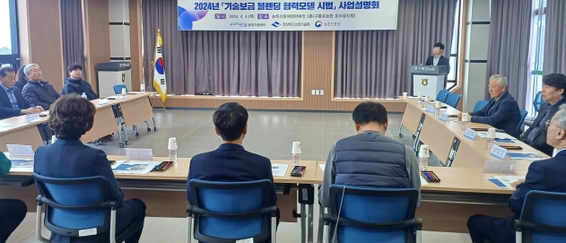 ▲ 4일 농특산물체험판매장에서 2024년 기술보급 블렌딩 협력모델 시범 사업 설명회를 개최했다. |