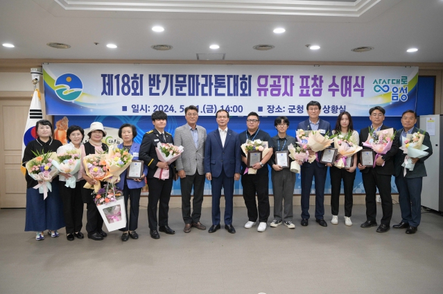 조병옥 군수는 “표창 수상을 축하드리고, 각 분야에서 적극적으로 참여·지원해 주신 수상자분들과 자원봉사에 참여해 주신 1000여명의 열정적인 노력과 헌신으로 안전하고 성공적으로 반기문마라톤대회를 개최할 수 있었다”며 감사의 마음을 전했다.