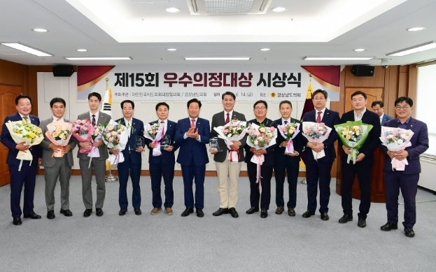이날 우수의정대상을 수상한 의원은 우기수(국힘, 창녕2), 장병국(국힘, 밀양1), 노치환(국힘, 비례), 정수만(국힘, 거제1), 김구연(국힘, 하동), 서민호(국힘, 창원1),유형준(민주, 비례), 이영수(국힘, 양산2), 장진영(국힘, 합천), 박주언(국힘, 거창1), 윤준영(국힘, 거제3), 최영호(국힘, 양산3) 의원 등 12명이다.