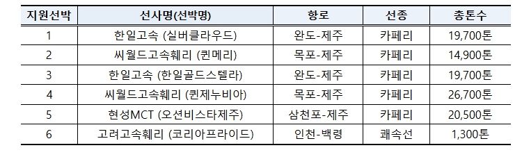 당초 펀드 지원 대상은 연안여객선이었으나, 연안여객업계와 연안화물업계의 형평성을 고려하여 2024년도부터 지원 대상을 연안화물선까지 확대했다. 그 결과 올해까지 조성된 2,490억 원의 펀드 자금으로 총 11척을 지원하고 있으며, 그 중 실버클라우드(제주-완도), 퀸제누비아(목포-제주) 등 6척의 연안여객선은 건조가 완료되어 항로에 투입되고 있다.