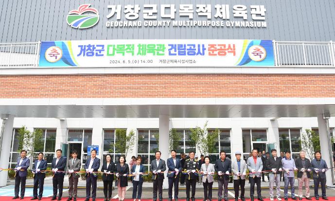거창군 다목적체육관은 총사업비 131억을 들여 2021년도에 착공하여, 지하 1층, 지상 2층, 연면적 2,788㎡ 규모로 건립되었고, 지난 4월 준공검사 후 내부 청소 등 마무리 작업을 마침에 따라 준공식을 열게 됐다.