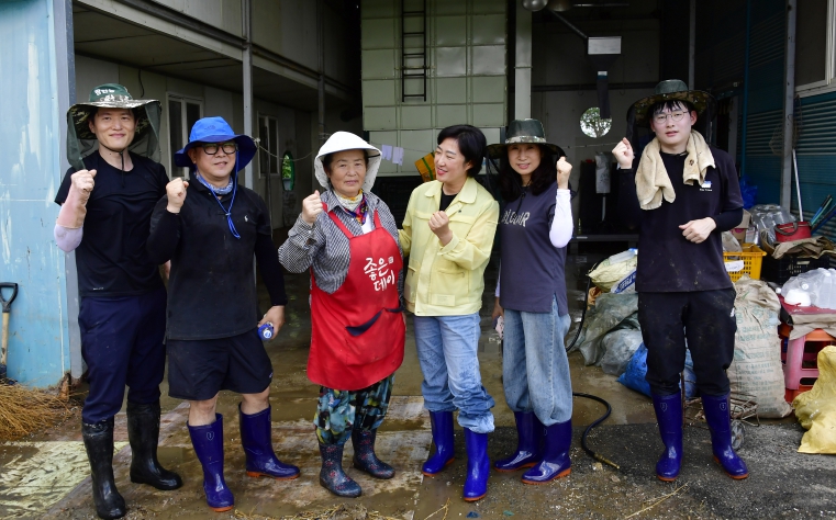 특히 복구 작업에 앞서 피해 현황을 청취하고, 수해 복구 인력·장비 지원 현황 등을 점검하며 피해 주민들을 격려했다. 이어, 장화와 장갑을 착용하고 진입로 정비, 침수 잔해물 정리 등 실질적인 복구 작업에 직접 나섰다.