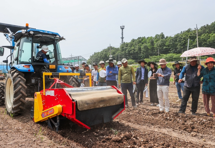 군에서는 넓은 두둑 폭과 경운기형 기계에 중점을 둔 노동집약적인 관행 마늘 재배방식에서 벗어나, 파종·수확·병해충 방제에 최적화된 다양한 트랙터 부착형 마늘 기계를 보급했는데 인건비를 크게 절감하고 농가 경영비를 개선하는 성과가 기대된다.