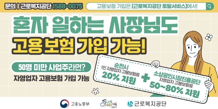 근로복지공단은 순천시의 보험료 지원사업 활성화를 위해 홈페이지 및 고용·산재보험 토탈서비스 알림창 게시 등 순천시 지원사업 홍보에 적극 동참할 예정이다.