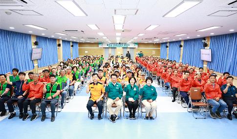 울진군청 대회의실에서 열린 발대식은 예측 불가능한 극한호우 및 취약시간대에 능동적으로 대처하기 위해, 지형과 수리에 밝은 이장, 자율방재단, 의용소방대, 자율방범대 등으로 편성·구성하였다.