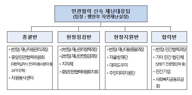 행정안전부는 지난 14일 오병권 자연재난실장 주재로 ‘민관협력 신속 재난대응팀’ 첫 회의를 개최해 본격적인 현장 활동을 위한 세부 추진계획을 점검했다.