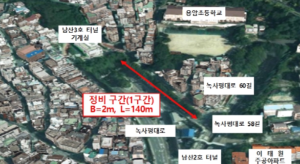 환경개선 주요 내용은 ▲녹지 및 수목 제거 ▲보행데크 설치이다.