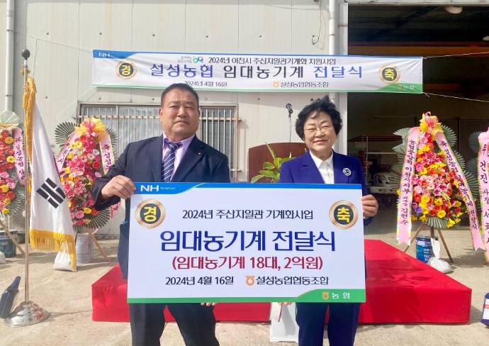 [뉴스서치] 이천시는 4월 16일 설성농업협동조합 농기계센터에서 농기계임대 사업의 일환인 주산지 일관기계화 사업의 추진을 위한 임대농기계 전달식을 개최했다.