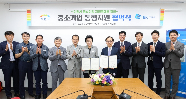 [뉴스서치] 이천시는 지난 29일, IBK기업은행과 관내 중소기업의 경영자금 대출을 돕는‘중소기업 동행지원’업무협약을 체결했다고 밝혔다.