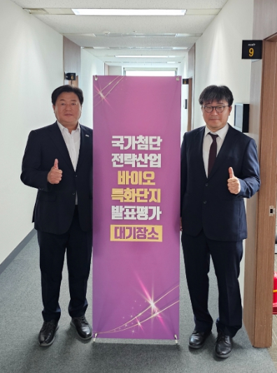 ▲ 4월 30일 산업통상자원부 '국가첨단전략산업 바이오 특화단지' 발표평가가 열린 서울 한국기술센터에서 임병택 시흥시장과 신영기 서울대 시흥캠퍼스 본부장이 각오를 다지고 있다. |