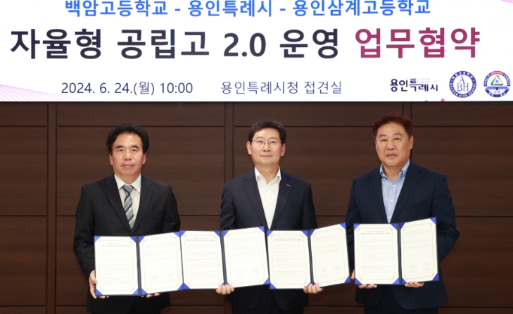 [뉴스서치] 용인특례시는 24일 백암고등학교, 용인삼계교등학교와 ‘자율형공립고 2.0’ 사업 선정을 위한 업무협약을 체결했다고 밝혔다.