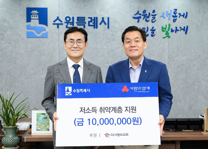 [뉴스서치] 더사랑의교회(수원 영통구 하동)가 “수원시 취약계층 지원에 사용해 달라”며 수원시에 1000만 원을 기부했다.