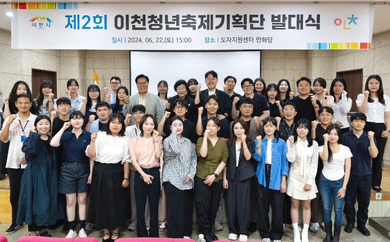 이날 발대식에서는 오는 9월 21일 개최 예정인‘제2회 이천청년축제’에 대한 소개와 김경희 이천시장과 송석준 국회의원의 격려사, 단원 위촉장 수여, 팀별 소통 프로그램 등이 진행됐다.