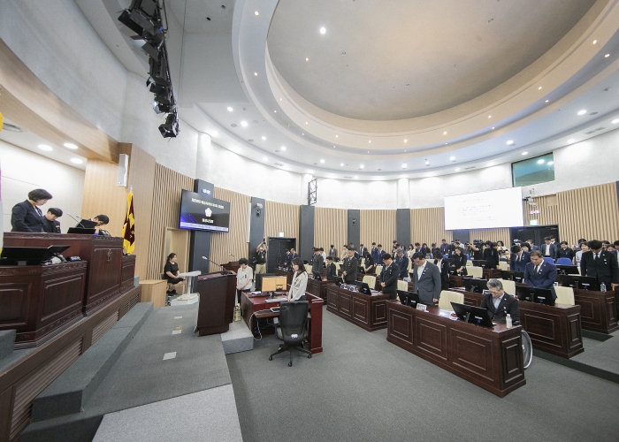 본회의에 앞서 화성시의회 의원들은‘화성 아리셀 공장 화재사고’희생자를 추모하고 명복을 비는 묵념을 했다.